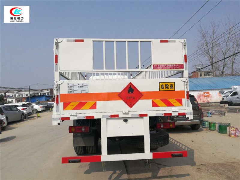 其他 隨底盤選裝駕駛室臥鋪側(cè)窗裝飾板、前圍擾流罩、前霧燈、駕駛室頂部裝飾燈。防護(hù)裝置:材料Q235、螺栓連接;后下部防護(hù)裝置:斷面尺寸100×50mm或120×60mm,離地高度540mm。安裝具有衛(wèi)星定位功能的行駛記錄儀。裝有ABS,型號(hào):3631010-C2000,4460046440;生產(chǎn)廠家:東科克諾爾商用車制動(dòng)系統(tǒng)(十堰)有限公司,威伯科汽車控制系統(tǒng)(中國)有限公司。排氣管前置,裝盤式制動(dòng)器,裝限速裝置,限速80km/h。該車運(yùn)輸具有獨(dú)立容器(瓶)包裝的易燃?xì)怏w(類項(xiàng)號(hào):2.1)和非易燃無毒氣體(類項(xiàng)號(hào):2.2);危險(xiǎn)貨物運(yùn)輸車輛的類型:FL型。運(yùn)輸易燃?xì)怏w時(shí),箱體是“易燃?xì)怏w”牌,運(yùn)輸非易燃無毒氣體時(shí), 箱體是“不燃?xì)怏w”牌。選裝貨箱箱板、后門結(jié)構(gòu)。